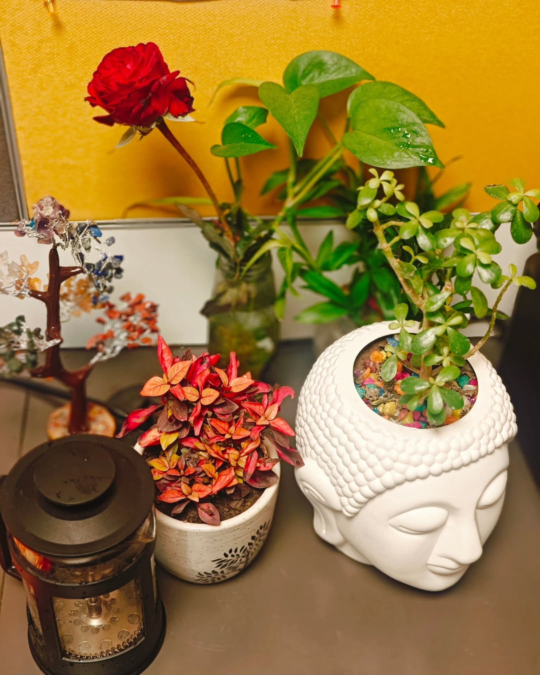 একটুকরো আমি আমার অফিসের কোণের কেবিনেও থাকে, নিজের মত করে। আমার বরাবর মনে হয় একটা মানুষ কী ভাবে, কেমন ভাবে, কেমন থাকে, সর্বোপরি নিজের থেকে কী চায় সেটা তার ঘর নিঃশব্দে বলে, সেই ঘরে সে যতদিনই থাকুক, কোথাও সেই ঘর তার মতই হয়ে ওঠে। এই জায়গাটাও ব্যতিক্রম নয়। আমার বাড়িতে ঘর আর অফিসের জায়গাটুকুর মধ্যে অদ্ভুত মিল আছে; গন্ধের মিল। কফির গন্ধ, পারফিউমের গন্ধ, পাতার গন্ধ, কাজের গন্ধ। এরা আমার মতই আনসার্টিফায়েড লোনার 🙂 । তবে দিনে দিনে যেভাবে গাছেরা বহরে বাড়ছে, বাঘ বেরোলে অবাক হবো না 😁😁। #me #mylittlecorner