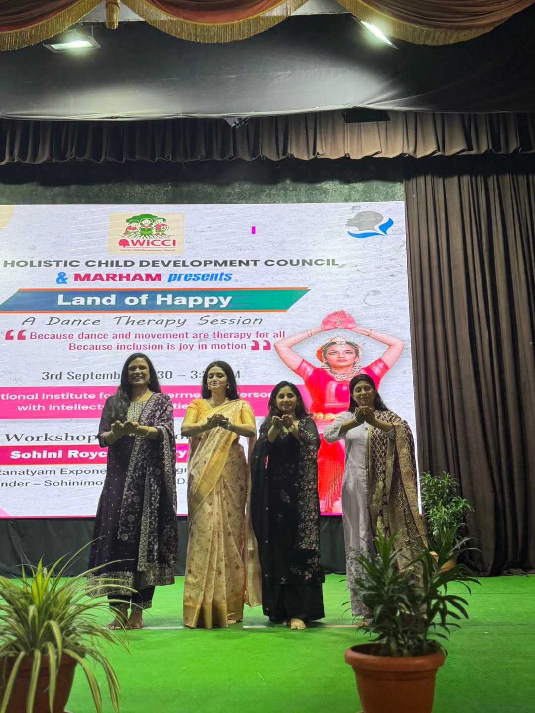 Land of Happy – Dance Therapy Session The WICCI Holistic Child Development Council, in partnership with Marham, hosted “Land of Happy” – a unique Dance Therapy Session at the National Institute for the Empowerment of Persons with Intellectual Disabilities (NIEPID), Secunderabad today. The session was conducted by the internationally acclaimed Bharatanatyam exponent and cultural ambassador Sohini Roychowdhury, who engaged NIEPID students in an hour of movement-based therapy that celebrated inclusion, healing, and the joy of expression through dance. NIEPID, India’s premier institute under the Ministry of Social Justice & Empowerment, provided the perfect backdrop for this landmark initiative. Our National President @anupamadalmiaofficial emphasized that the program was a step towards building bridges through art and movement, making inclusion a lived reality. @payalj2301 , Health & Nutrition Lead of the Council, also graced the event, underscoring the holistic approach of this initiative. @nabatlakhani, Founder of @marham_resonating_resilience , highlighted that such initiatives reflect the therapeutic power of dance while creating empowering spaces for children with intellectual disabilities. We also thank @mitra.malani for his help and support in smooth execution of the event. Because dance and movement are therapy for all. Because inclusion is joy in motion. @sohinimoksha #LandOfHappy #DanceTherapy #InclusionThroughArt #WICCI #HolisticChildDevelopment #Marham #DanceHeals #NIEPID #Secunderabad #JoyInMotion