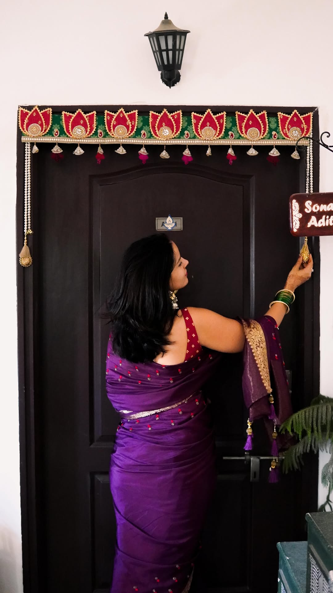 Day 18 of Tyohaar Ki Chamak ✨ Every Diwali, I love adding a touch of colour and tradition to my home, and this time, it’s through this lotus gota bandanwar! Did I share that my mom sends these colourful laces and gota all the way from Noida, so that I can make a toran for DiwaliðŸ¤ðŸ¤it’s cute na! There’s something so special about the way a simple toran can change the whole vibe of the entryway, it’s like the first smile your home wears for the festival and it just feels so so welcoming. I am sure you decorate your doorway too, but tell me your favourite way - rangoli se ya toran se, ya hangings?? (Diwali toran, bandhanwar, gota, diwali doorway decor, entryway decor, Diwali special, diwali party, festive vibes, trending, festive styling, laces)