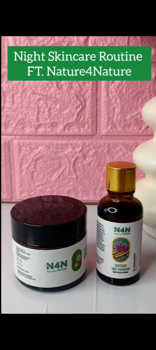 Night Skin Care Routine FT @nature4naturebeauty Night Repair Cream anti-aging ingredient that stimulates collagen synthesis offers a skin-brightening effect provides anti-acne and antibacterial benefits for a clearer complexion. delivers antioxidant and anti-inflammatory benefits for naturally radiant skin Saffron Chandan Serum REPAIR & REJUVENATE BOOSTS COLLAGEN FOR FIRMER SKIN SMOOTHENS FINE LINES AND WRINKLES PROVIDES A HYDRATION BOOST FOR PLUMP, RADIANT SKIN #skinrejuvenation #skincare #nightskincareroutine #clove #manjista #skinrejuvenation @collabsaga