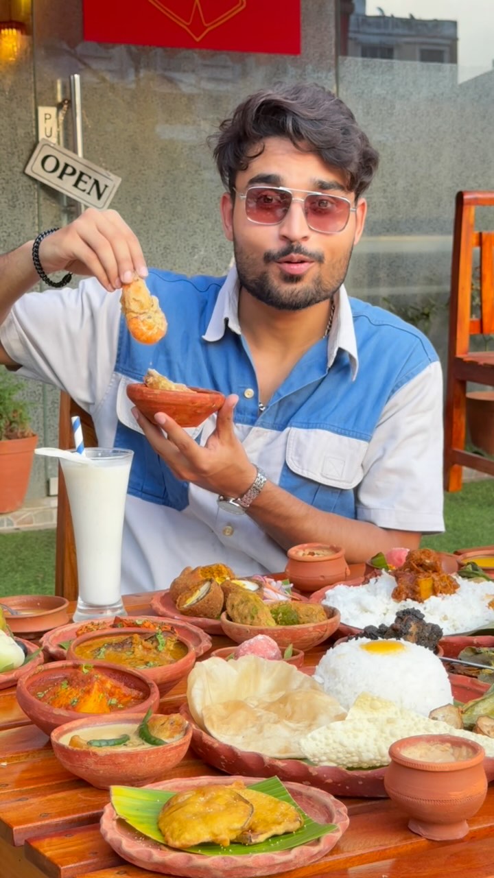 You won’t believe this thali is only ₹399! 😱🍱 Full-on Jamai Shashti vibes at Hichkii Cafe, Newtown – and trust me, itna variety ek plate mein dekhke toh shaadi ka throwback aa gaya 😍💥 From Dimer Devil, Macher Matha diye Dal, Ghee Bhaat, 5 Rokom Bhaja, to that mind-blowing Chingri Potol er Dolma 🤌 But wait for it… That Karimganj-er Tilu Murgi & Mallick Barir Khasir Gorgora (mutton lovers will cry happy tears 🥹🔥) AND the game-changer – Posto Sorse Bata Bhekti Paturi wrapped in banana leaf… UFFF, pura taste buds ka fireworks! 💣🐟 Ending it sweet with Rajbhog, Misti Doi & chutney pappad combo 😋❤️ All this… ONLY ₹399! (aur haan ₹699 wala bhi hai for extra dhamaka – next post mein uska scene ayega 🤫) 📍Hichkii Cafe & Restaurant – Newtown, Kolkata Save this for your next foodie outing & tag your jamai, baba, dada, jethamoshai – sabko le jao ek royal bhoj pe 😎✨ #foodyabba #jamaiShashtiThali #kolkatafoodie #bengalithali #streetfoodwithabba #newtownkolkata #kolkataeats #foodieadda #bongfoodie #hichkiicafe #kolkatathali #muttonlove #paturi #chingricurry #bengalifoodvibes
