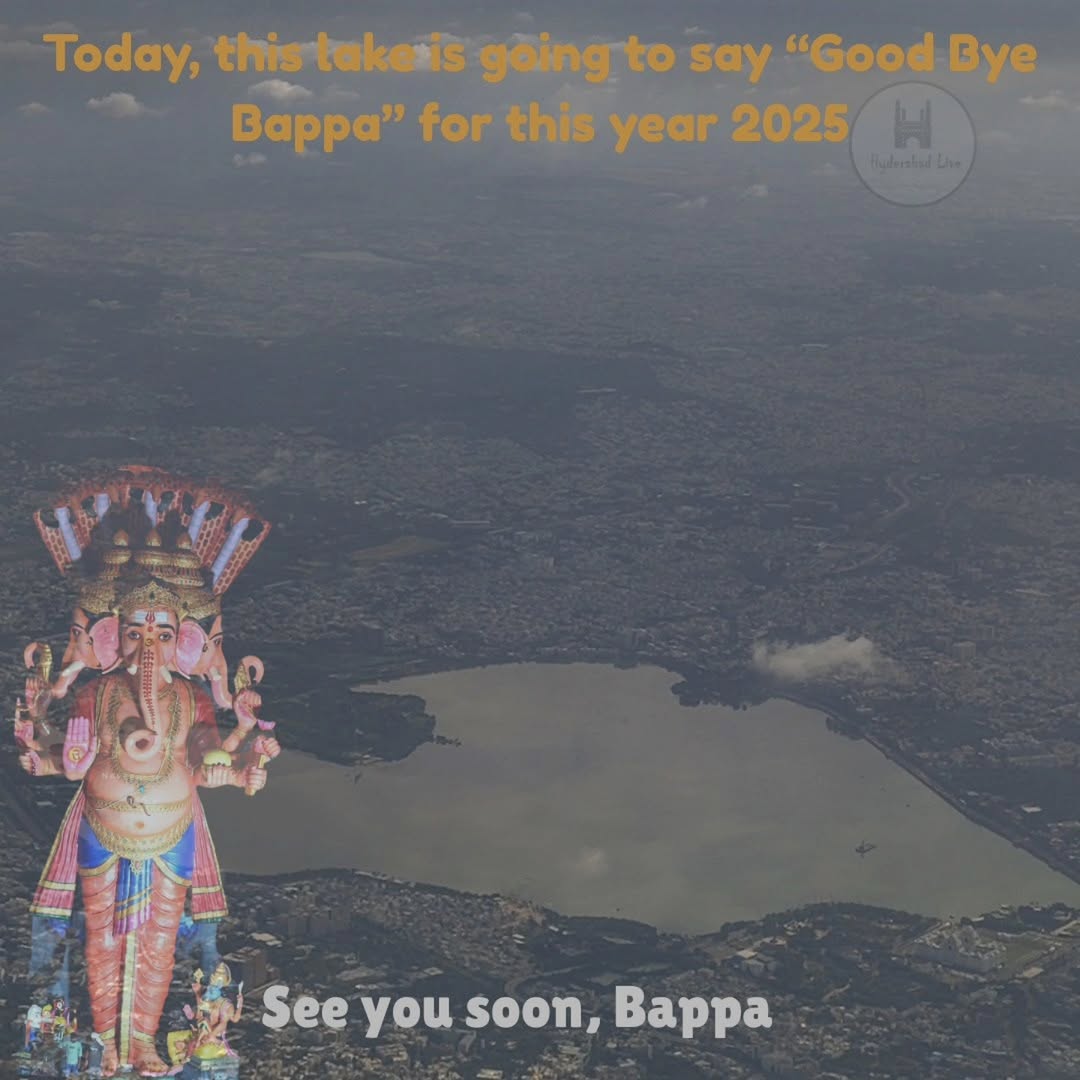 Hussain Sagar will witness the final goodbye to Bappa for this year. See you soon Bappa. . [Hyderabadlive, Hyderabad, Telangana, Bappa, Ganesha, Immersion, Nimmajanam, Visarjan, Lord Ganesha, Culture, Vibe, Explore, Viral]