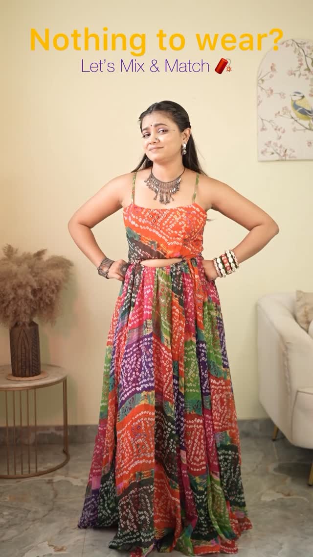 HELLLLPPPP !!!!!! Which one should i wear for garba night !?👇🏻🙈 Created some Mix & Match outfits for Navratri 🙈 I think i did a great job👀😍 What do you think ? Let me know in the comments 🫶🏻👇🏻