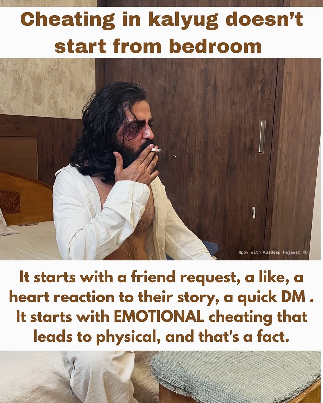 Cheating in kalyug not start from bedroom 😰💔 . . @kuldeeprajawatkd @povwithkd . . #relationshipquotes #heartbrokenquotes #lovequotes #cheating #heartbroken #emotional #couple #relationship #kuldeeprajawatkd #povwithkd