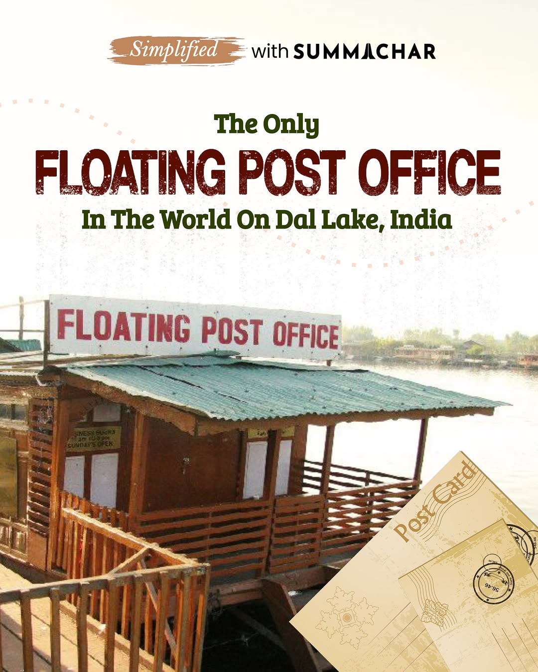 Did you know India is home to the world's only Floating Post Office, located on Dal Lake in Srinagar, Kashmir? This iconic post office blends tradition with innovation, offering picturesque views and postal services from a traditional Kashmiri houseboat. Visit and send a piece of Kashmir to your loved ones! Don't forget to take home a piece of history with its special postmark! #FloatingPostOffice #DalLake #Srinagar #Kashmir #UniqueDestinations #IndianPostalService #TravelIndia #IncredibleIndia #PostalHistory #Houseboat #UniquePostOffice #IncredibleIndia #PostalService #TouristAttraction #CulturalHeritage #HiddenGems #UniqueDestinations #IndianPostalService #TravelIndia #IncredibleIndia #TouristAttractions #visitkashmir