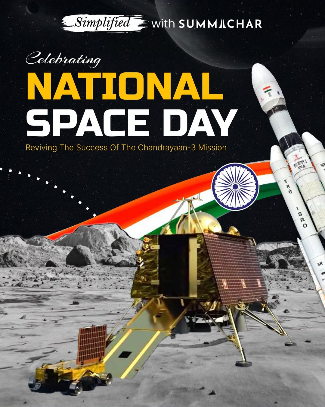 Celebrating National Space Day and India’s monumental success with Chandrayaan-3! 🇮🇳 From landing near the South Pole of the moon to the Pragyan rover's exploration, India has joined the elite ranks in space exploration. This achievement is a beacon of inspiration for our youth, proving that space is within our reach. Let’s continue to advance in space technology and pave the way for future generations. #NationalSpaceDay #Chandrayaan3 #IndiaInSpace #SpaceExploration #SpaceTech #ISRO #STEM #YouthEmpowerment #MoonMission #Innovation #india #isro #primeminister