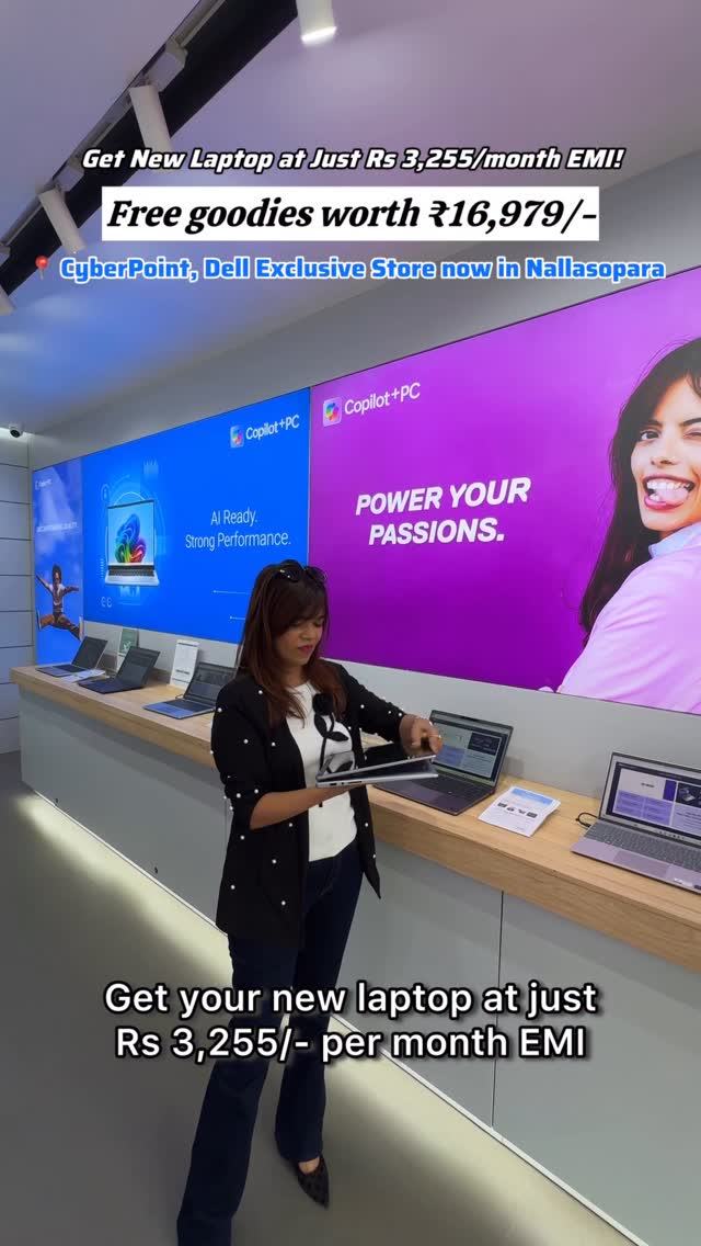 🎉 Get your new laptop at just ₹3,255/month EMI — only at CyberPoint, your Dell Exclusive Store in Nalasopara! Plus, receive free goodies worth ₹16,979, cashback up to ₹10,000, and warranty upgrades for just ₹99! Explore the latest Dell laptops, desktops & accessories with expert advice and top-notch service. 📍Right beside Capital Mall, Nallasopara 🎯 Perfect for students, professionals, and gamers alike! @dell @dellindia @alienware @alienwareindia @cyberpoint_dell For more details call 📞 +91 73978 99921 They also have outlets across Virar, Vasai, Bhayander, Malad, Chembur, Vashi, and Belapur — and this Nalasopara store marks their 8th outlet! — #GetYourNewLaptop #DellExclusiveStore #CyberPointDell #DellIndia #LaptopDeals #ZeroEMI #EMIOptions #LaptopOnEMI #FreeGoodies #TechOffers #CashbackDeals #WarrantyUpgrade #StudentLaptop #WorkLaptop #GamingSetup #TechStore #NalasoparaLaunch #MumbaiStores #VasaiVirarLife #DellAccessories #NewTechStore #LaptopShopping #DellGamer #Dellindia #dell #Alienware
