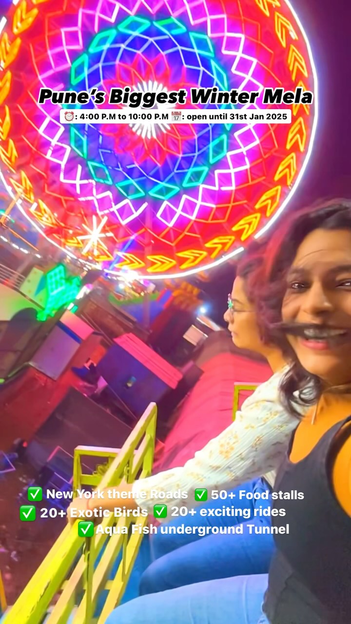 🌟 **Mega Fun Fair Pune is here!** 🌟 . . 📍 **Location:** HA Ground, Pimpri, Pune . . 📅 **Dates:** Nov 11, 2024 - Jan 31, 2025 (Extended) . ⏰ **Timings:** 4 PM - 10 PM . . What’s waiting for you: 🌸 . . 🐠 **Underwater Fish Tunnel** – Walk through a 180° aquatic wonder! . 🐦 **Exotic Birds** – Meet 20+ species, including parrots and ostriches! . 📸 **New York Road** – Perfect photo spot with a city backdrop! . 🎡 **Thrilling Rides** – From the Columbus to the Cyclone! . 🛍 **Shopping & Food** – From cosmetics to tasty treats! . **Ticket Price**: Rs. 100 (Adults & Kids above 3). Kids under 3 are free! . . 🎟️ **Cash only, at the counter**. Don’t miss the fun! Grab your friends and family and make memories! . . . #pune #punecity #punediaries #punefoodblogger #puneadventures #punekar #puneri #pcmc #things2doinpune #puneblogger #puneinstagrammers #punenightlife #pcmcfoodies #puneevents #punetimes #mela #funfair #exoticbirds #fishaquarium #giantwheel #melaa [things to do in Pune winter activities in Pune Pune fun fair family events in Pune Pune mela 2024 Mega Fun Fair Pune best places to visit in Pune Pune attractions fun fairs in Pune Pune entertainment things to do with kids in Pune Pune photo spots Pune food stalls Pune shopping events fun rides in Pune winter mela Pune 2024 activities for kids in Pune Pune travel guide family-friendly events in Pune Pune events this weekend best events in Pune Things to do with friends in Pune Adventure in Pune ]