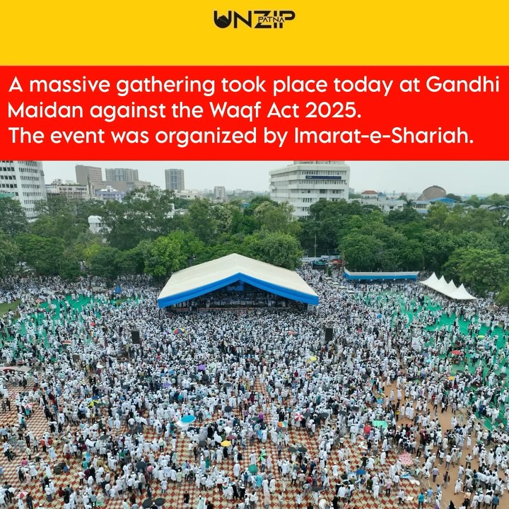 A mass gathering of the Muslim population took place today at Gandhi Maidan, organized by Imarat-e-Shariah as a protest against the Waqf Act. Participants from across four states joined the movement. Leaders like Pappu Yadav and opposition leader Tejashwi Yadav have also joined, along with chief organizer Maulana Ahmad Wali Faisal Rahmani and several other prominent personalities. Drone shot - @shahrukh_dawar_khan Follow us for more updates @unzip_patna #unzippatna #biharnews #news #biharnewstoday #patna #biharnewsonline #waqf #waqfamendmentbill #gandhimaidan_patna #muslim #waqfbill #waqfbillamendment #waqfboard #Patnacity #patnalikes #patnamemes