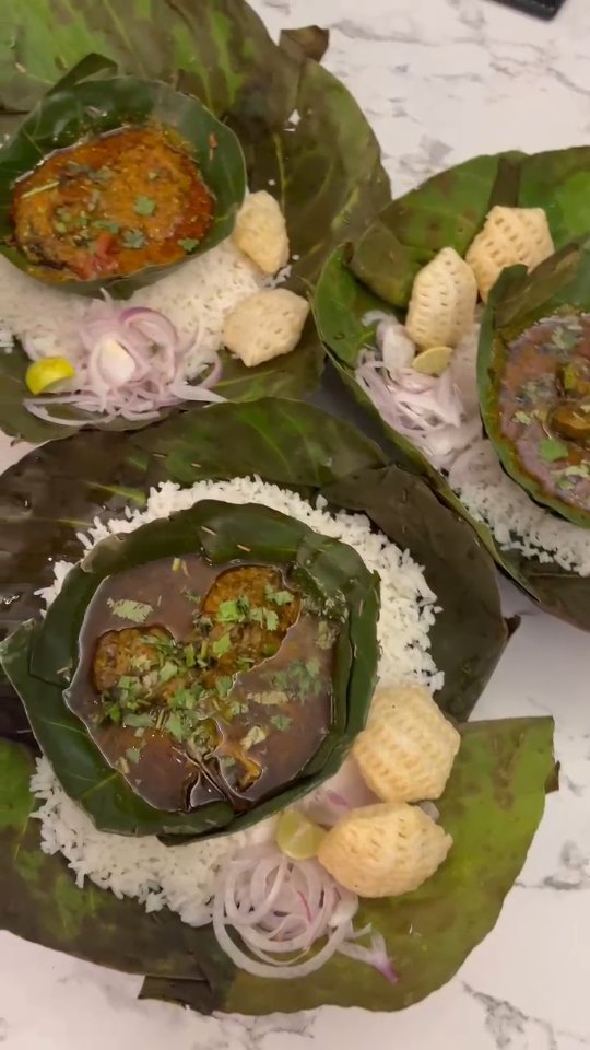 “Best place for authentic Jharkhandi cuisine 🍲✨@sakhuaahotel Authentic Jharkhandi Mutton Curry, Chicken Curry & Rohu Fish Curry serving in leaf bowl and Plate. #reelsinstagram #foodphotography #noidacity #foodie #influncer #réel #foodphotography #reelitfeelit #viral #viralreels #share