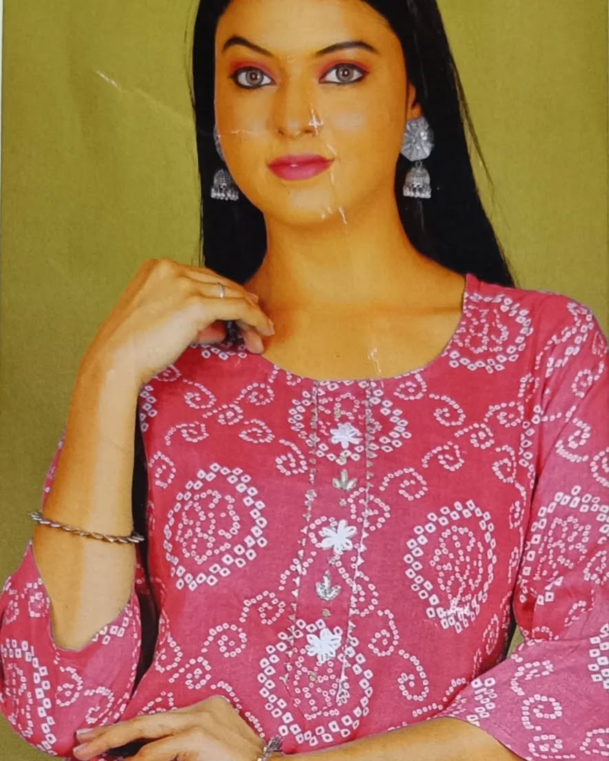 Bandhni Straight kurti in pink Material: Rayon DM for price ✨