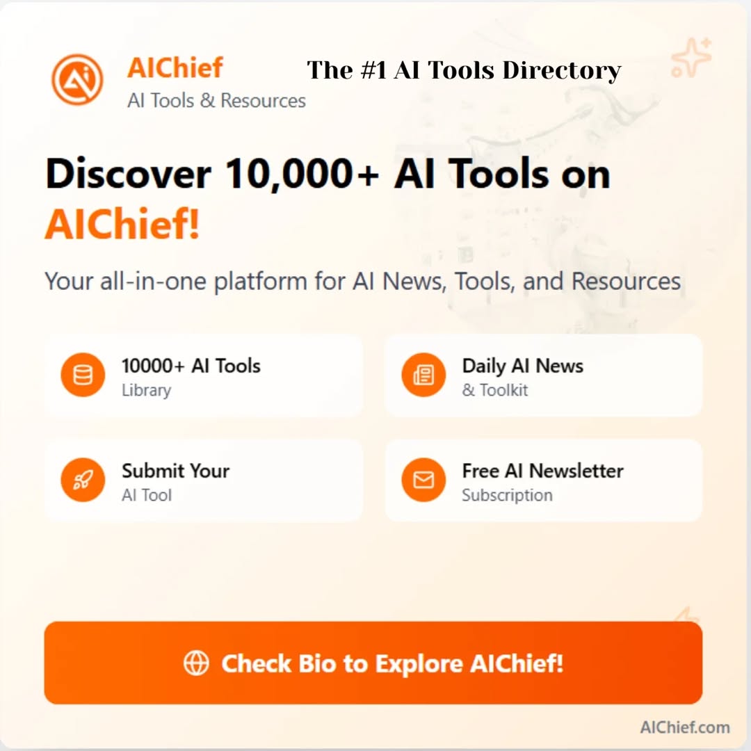 #1 AI tools Library ✅ AIChief par aapko milenge 10,000+ verified AI tools, jo aapke business, productivity, aur creativity ko boost karenge. 🔍💡 #AIChief #AITools #Innovation"