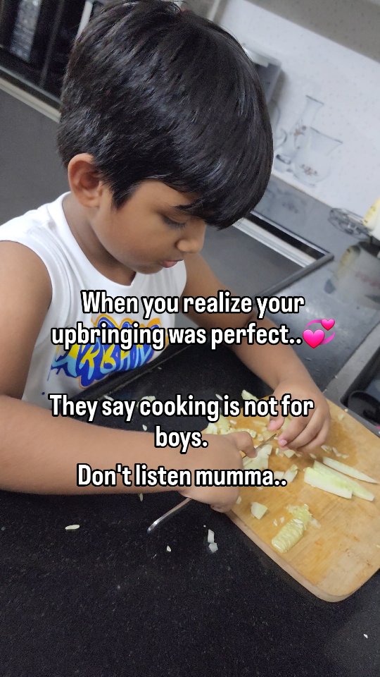 POV: Your'e a mom who teaches cooking to your son. You are not just teaching cooking, but teaching independence and love. Don't worry he is using Butter knife 😁 #momlife #lifewithboys #lifewithkids #boymomlife #kidchefs #littlechef