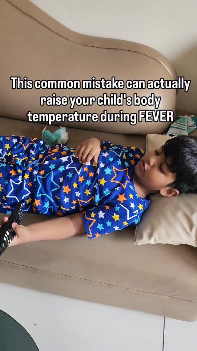 This common fever mistake can actually make your child’s temperature rise When a child has a fever, their body is already trying to lose excess heat to return to normal temperature. Covering them tightly with blankets traps the heat inside, causing the opposite of what the body is trying to do. Wrapping them tightly in a blanket can actually make the fever worse or make them feel more uncomfortable. Here’s why 👇 🔥 1. FEVER IS BODY'S NATURAL COOLING PROCESS A fever happens when the body raises its temperature to fight infection. If you cover the child too much, you trap the body heat inside, which prevents the body from cooling down naturally. 🧊 2. OVERHEATING CAN BE DANGEROUS Heavy blankets or too many clothes can cause overheating — leading to higher body temperature, sweating, dehydration, and in rare cases, febrile seizures (shaking due to high fever) 🌡️ 3. COMFORT HELPS RECOVERY The goal isn’t to “sweat the fever out,” but to keep the child comfortable. Instead of wrapping.Try these ✅️Dress them in light, breathable clothes. ✅️Keep the room cool and well-ventilated. ✅️Offer plenty of fluids (water, soup, ORS(w.h.o suggested). ✅️Use a lukewarm sponge bath if the child feels too hot. Blanket is necessary only when the child feel chills & shivering. ➡️Follow for more information like this. child fever care why not cover during fever baby fever tips fever mistakes parents make managing fever naturally overheating during fever kids health awareness parenting health tips how to comfort child with fever