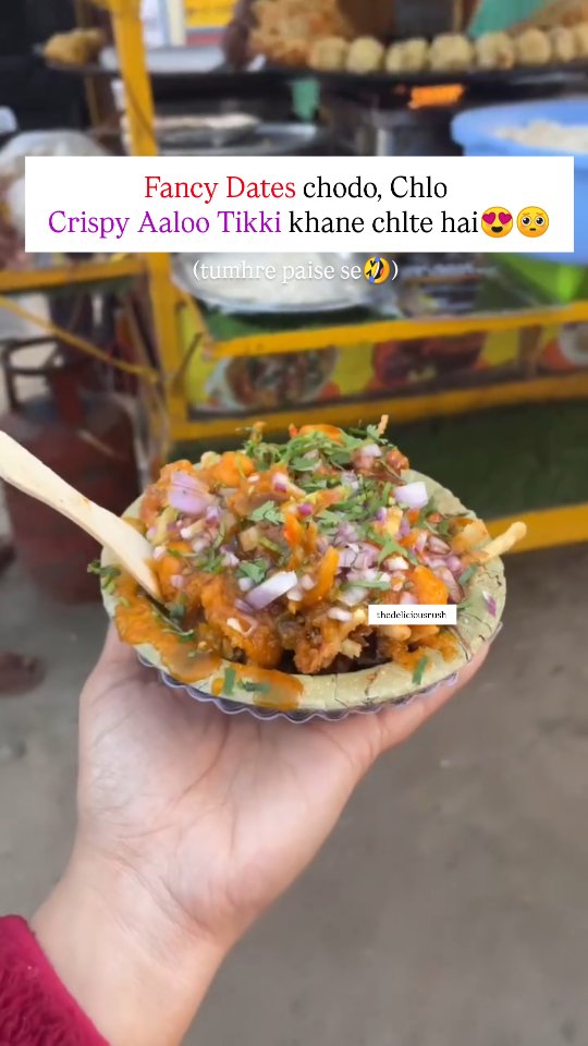 Chle tumhre paise ki Date pe😍🤣 . . . . . Follow @the_delicious_rush Follow @the_delicious_rush . . . . . . #foodblogger #trending #reelsviral #streetfood #aalootikki #crispychaat #aaluparatha #aalutikki #tikki #chaat #chaatlover #foodporn #instafood #trendingreels #foryou #delhibloggers #bahraich #viralreels #viralsongs #chatpatafood #chatpatichaat #fancydate #desikhana #spicyfood #relatable #foodie #golgappe #pizzalover #noodles