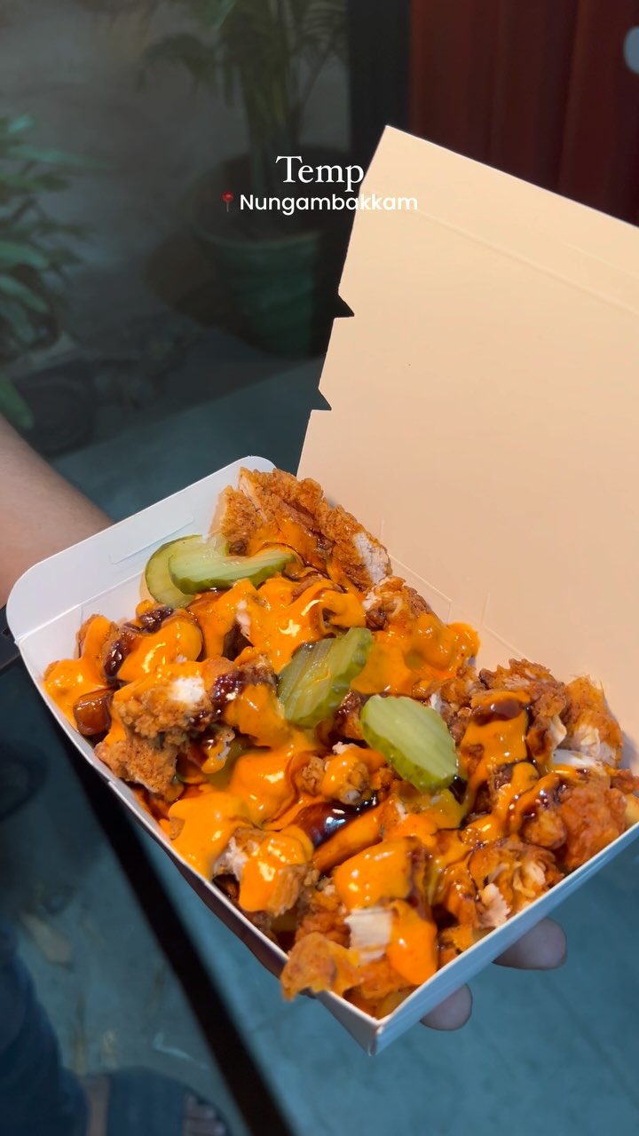 A so good Nashville chicken burger on board 🔥🍔 We recently visited @temp.fc We tried their 👇🏻 1. Korean chicken & waffle : Korean fused chicken comes with waffle 🍔🔥 2. BBQ loaded : it comes with loaded fries, and chicken topped with bbq sauce 3. Nashville chicken burger : my personal favourite and a must try 💯 4. Peanut butter milkshake : we really enjoyed this one 🪐🔥 #explorepage #nashvillechicken #peanutbutter #foodporn #foodlovers #chennaifood #chennaifoodguide #authenticity #reelsininstagram