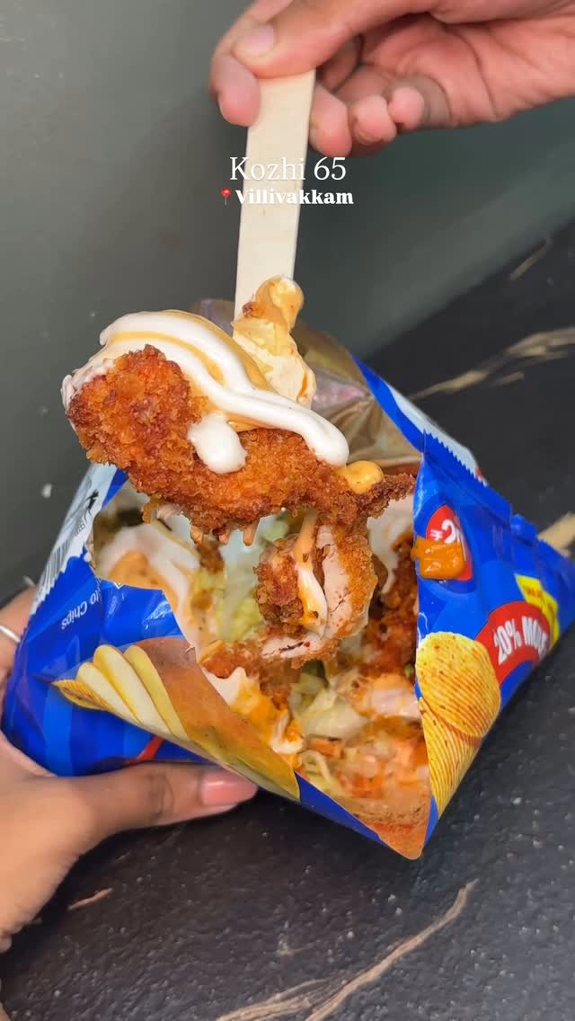 Kozhi 65 now at Villivakkam‼️🔥 We recently visited @kozhi65_kolathur This newest branch has come up with awesome dishes with amazing taste 💯 We tried their 👇🏻 1. Chicken Chips Bag 2. Cheesy Chicken Paanai 3. Moru Moru Chicken 4. Green Apple Mojito #explorepage #burgers #foodporn #foodlovers #chennaifood #chennaifoodguide #streetfood #cafe #mojito #reelsininstagram