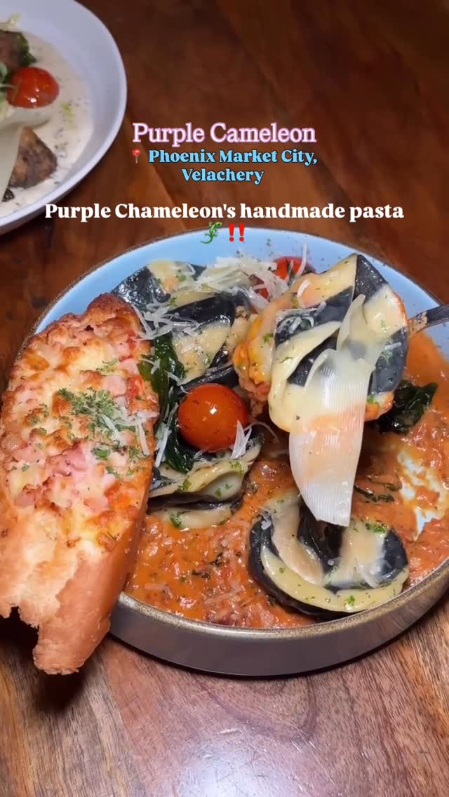 Purple Cameleon 💜🦎 We recently visited @purple_chameleon This beautiful place has come with this new handmade pasta menu 🍝 We tried their 👇🏻 Especially their Ravioli with Smoked Chicken and sun dried tomatoes was 10/10 🔥 #explorepage #burgers #foodporn #foodlovers #chennaifood #chennaifoodguide #streetfood #cafe #mojito #reelsininstagram 2.