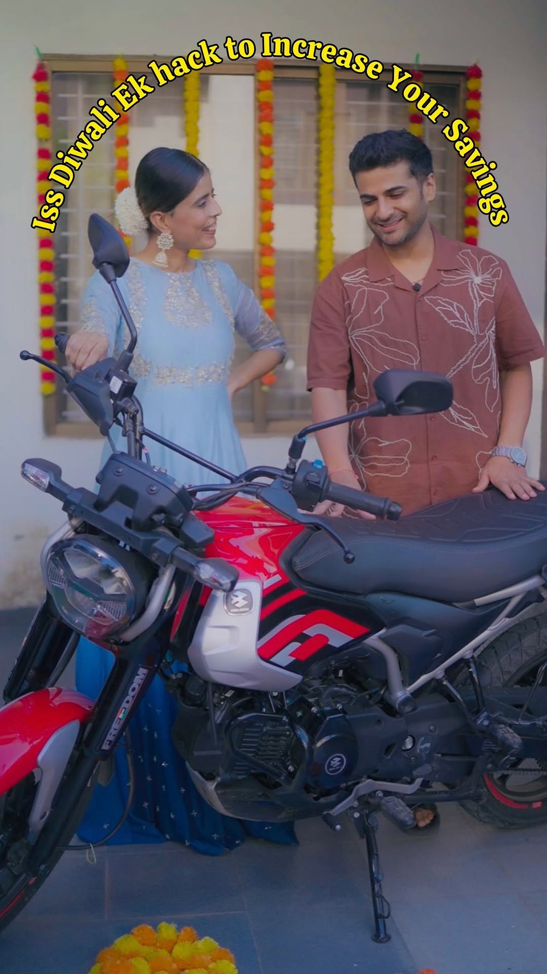 Iss diwali ek hack to increase your savings 😎 . . . . . . Check out today: bit.ly/diwali-freedom and put it in your cart: *TnC apply. #ad#Freedom #BajajFreedom #RideTheChange #Diwali #Couples #bike #cngbike #bikelaunch #newride #diwalishopping #innovation #lifestyle #automobile #couplereels #trending #explore #fuelefficiency #savings #couplebloggers #contentcreator #husbandandwife