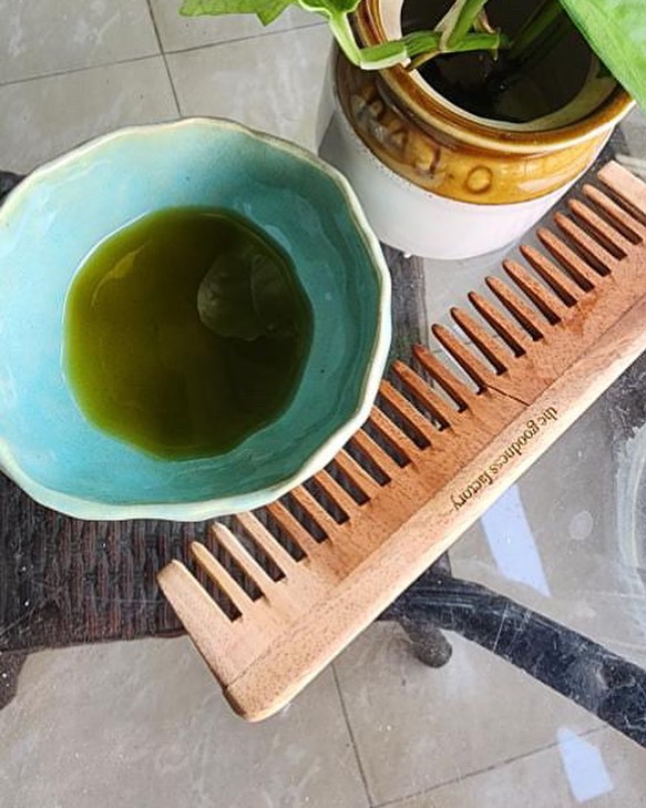 Our specially formulated Hair Oil for severe hairfall & hair loss control. This oil is enriched for over 10 hours through slow heat infusion of fresh hibiscus leaves, neem, curry leaves, amla, onion, flaxseeds, kalonji & more, in multiple oils such as Coconut, sesame & Castor. All oils are PURE Cold Pressed. ZERO Paraffin & Mineral Oils. ZERO chemicals & preservatives. Regular usage helps with Severe hairfall control, Headache relief with scalp massage, Suitable for all hair & scalp types: Oily, Dry, Normal, Curly, Colored, Chemically treated, Henna treated hair. DM to order. Pic credit - @kusumrohra