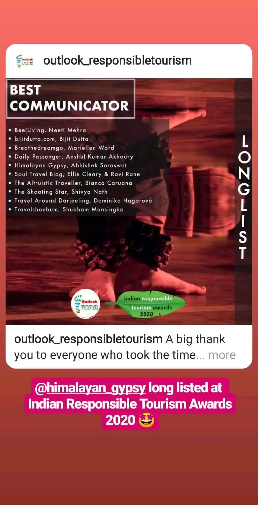 IATA Awards 2020! himalayan-gypsy.in among the top 10 blogs under the category of best communicators 💝