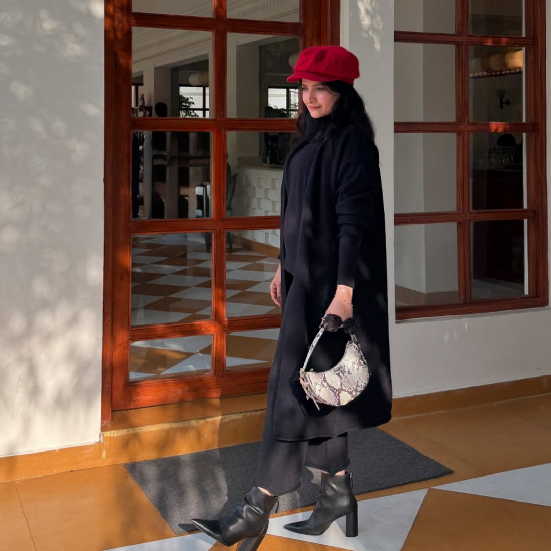 Winter chic❄️layered up & loving it🖤 #winterfit #womenfashiontrends #fashion2025 #womenwear #dailyfits #blackoutfits #oufits #outfitstyles #winteroutfits Fashionista Fashion blogger influencer India Lucknow Dressed up January Capricorn style