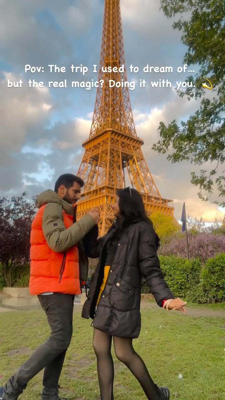 City of love🙈 this had to be the beginning of the honeymoon series😋 From sunshine to starlight, you’re my favorite view in every hue 💫✨ Me getting very shy because he picked me up (which was not decided🙈) and i was patting his shoulder asking him to drop me down 😝 Love, fairy tale, romance, Eiffel tower, paris, honeymoon diaries, transition, love is in the air, newly married, husband wife, couple, viral couple, sunset, italy, france, taylor swift, love, honeymoon content, viral couple #ForeverUs #AlcantaraMoments #honeymoon #honeymooncontent #paris #europe #eiffeltower #POVWithYou #CoupleGoals #FromDayToNight #RomanticReels #LoveInEveryLight #GoldenHourVibes #TravelWithBae #SunsetToStarlight #AestheticCouple #DreamyVibes #ViralCoupleContent #ReelsTrending #ItalyLoveStory #RelationshipInspo #LoveInItaly #MainCharacterEnergy #ReelLoveStory
