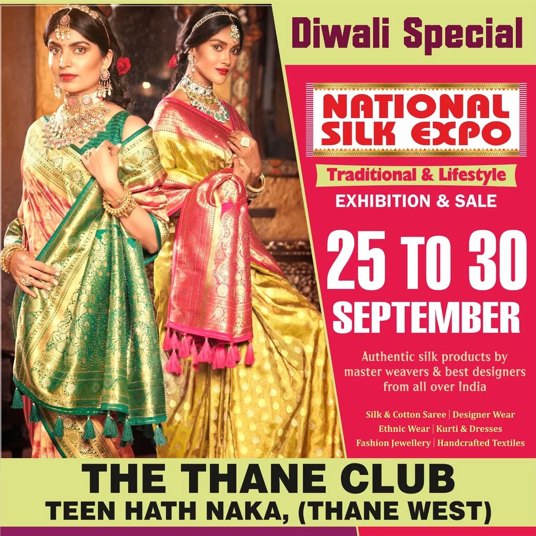 National Silk Expo A direct weavers handloom exhibition & sale 📆 Date: 25thSeptember 2025 to 30 September,2025 📍Address : The Thane Club Teen Hath Naka , Thane West A direct weavers handloom exhibition & sale of all new collection in latest variety & new designs of pure silk & cotton saree, kurti, designer & ethnic dresses & much more with news designs Entry Free, Time : 11:00AM to 09:00PM #mumbaiexhibition #mumbaiexplorer #mumbaiexpo #mumbaiexplore #MumbaiExpo2025 #mumbaiexhibition #mumbaiexhibitions #mumbaishopping #mumbaishoppingguide #mumbaishoppingfestival #mumbaiinflueer #mumbaiinfluencer #mumbaifashio #mumbaifashionweek #mumbaifashionblog #mumbaifashion #mumbaifashionblogger