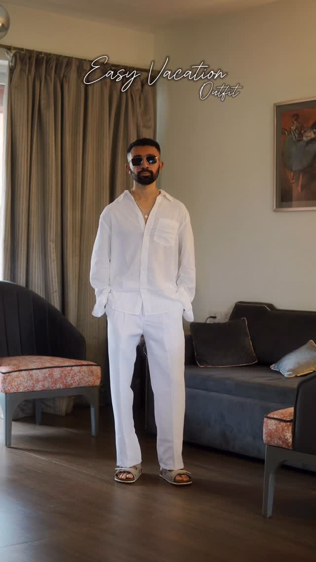 Easy Fit ✨ Commnt fr link 🔗 __ Fit :- Shirt @hm_man trouser @dennison.in Sandles @myntra Watch @casio.india Accessories @hm [ Vacation, Vacation outfit , white , goa outfit, old money , summer fashion, linen shirt , all white , summer]