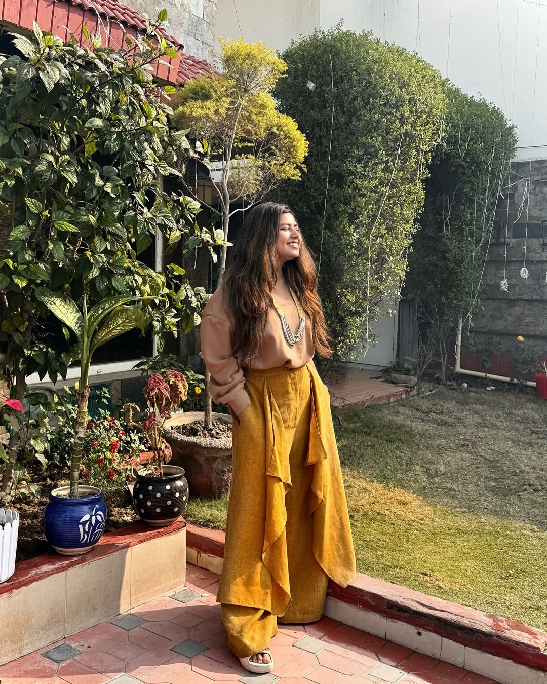 Soaking in that winter sun. It was fun teaming up my sweatshirt with those wide legged pants and a necklace from an ethnic suit piece for the ocaasion of Makar Sankranti . . #lifestyle #trader #fusion #indianfestival #festivewear #indowestern