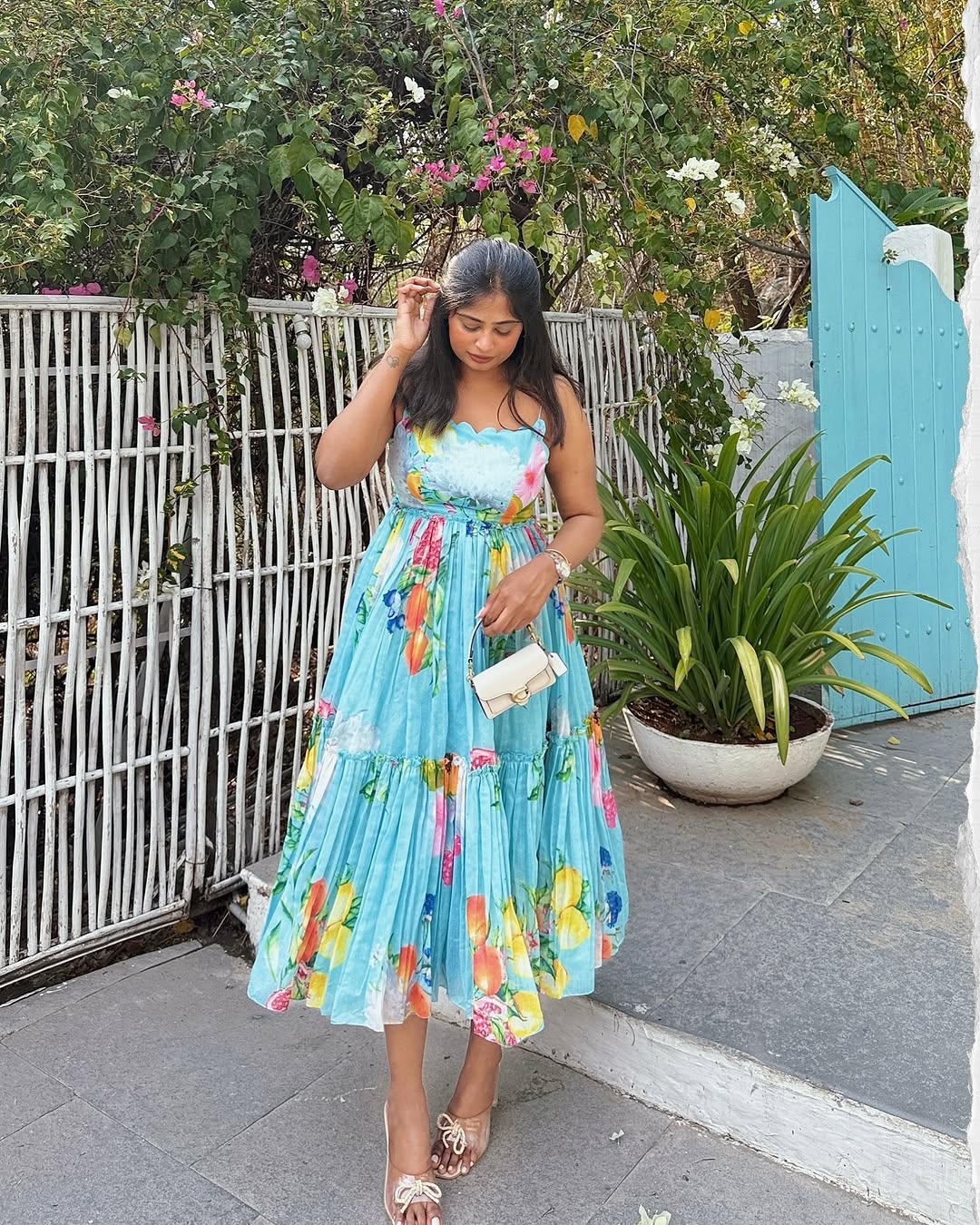 Letting summer bloom in this dreamy dress from @vrindabysrihithareddy 🩵✨ (Fashion, floral, summer fits, summer outfits, summer dress, flowy dress)