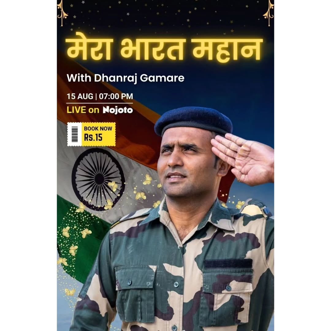 My Seventy-fourth Live Show On @nojotoapp Artist Name : Dhanraj Gamare @dgbreakerofficial Show Name : मेरा à¤à¤¾à¤°à¤¤ महान Show Date : 15 Aug 2023 Show Time : 7:00 PM Ticket : 15 For Book My Show Download Nojoto App From Playstore Follow Me 👉 @dgbreakerofficial For Reading Amazing Hindi Quotes 📖 © Own Hashtag : #dhanrajgamare #dhanrajgamarebookselling Common Hashtags For Writers : #writers #writerscommunity #poetry #writer #writing #writingcommunity #love #quotes #nojoto #nojotoofficial #nojotolive #nojotohindi #nojotowriters #nojotoapp #nojotopoetry