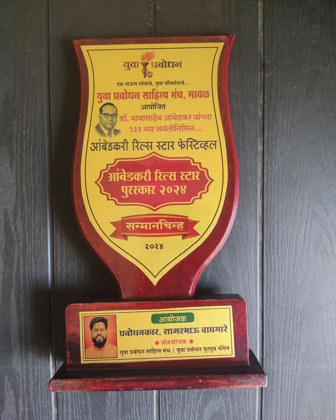 युवा प्रबोधन साहित्य मंच , मावळ आयोजित डॉ. बाबासाहेब आंबेडकर यांच्या १३३ व्या जयंतीनिमित्त... आंबेडकरी रिल्स स्टार फेस्टिव्हल आंबेडकरी रिल्स स्टार पुरस्कार २०२४ सन्मानचिन्ह २०२४