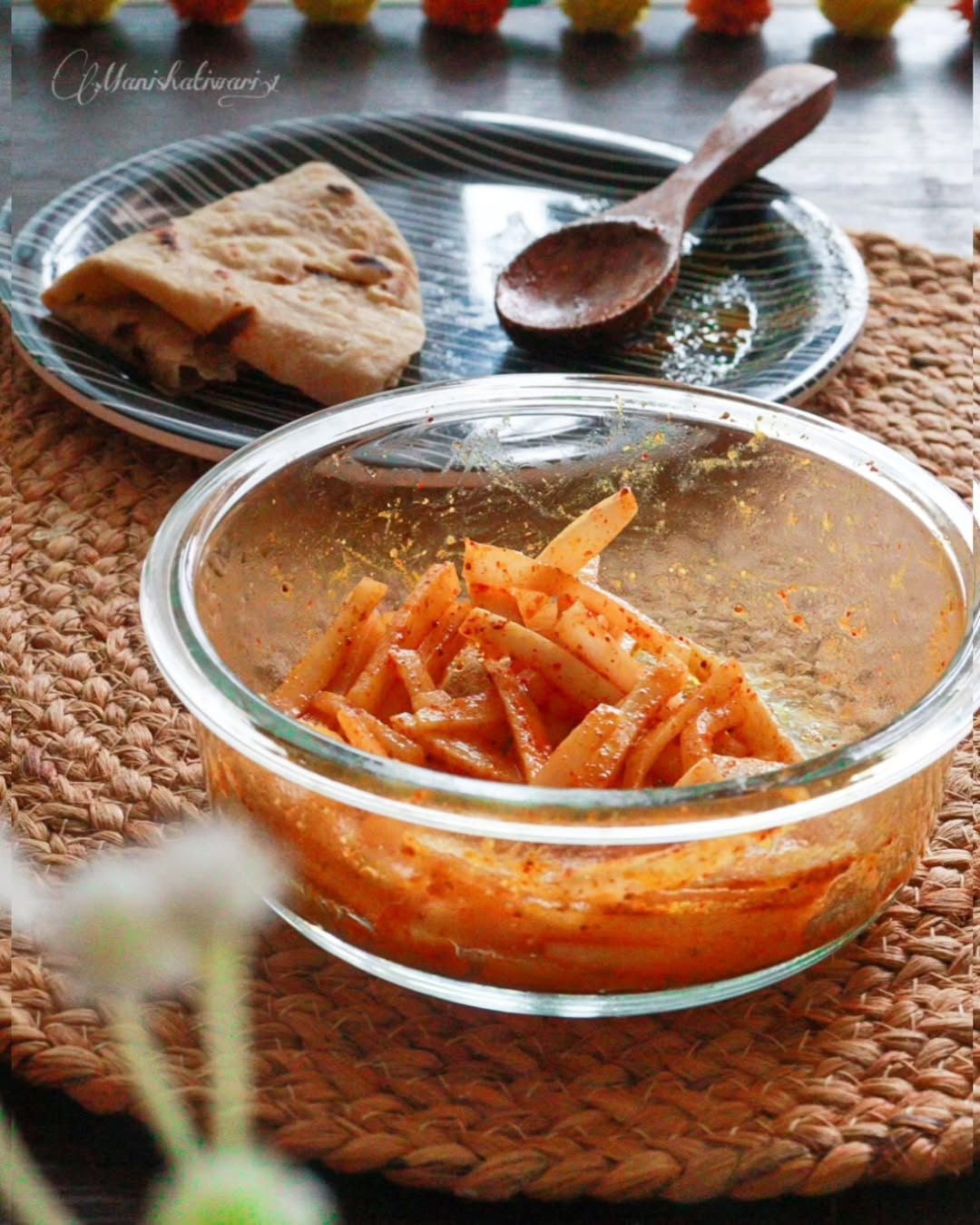Mooli ka Instant Achar (recipe reel at my page 🎥 ) is a quick radish pickle made with simple spices and mustard oil. It is a tangy and mildly spicy accompaniment that pairs well with Indian meals like parathas, khichdi, or dal-rice. This instant version doesn’t require fermentation or long waiting periods, making it convenient for quick preparation. Season for Making Mooli ka Achar Winter Season: Mooli (radish) is best made into achar during winter as radishes are at their peak in flavor, freshness, and availability during this season. Winter radishes are crisp, juicy, and less pungent, making them perfect for pickling #mooliKaAchar #RadishPickle #IndianPickle #WinterSpecial #HomemadeAchar #PickleLovers #IndianFood #AcharRecipe #SpicyPickle #TraditionalTaste #FoodieLife #DesiFlavors #QuickPickle #FoodPhotography carasouel #carasoul #carousel #carousels #curlyhairgirl #raw_all_india #raw_collages #akhanna #capturedoncanon #shotononeplus