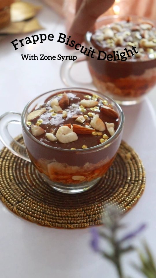 Frappe Biscuit Delight ( a culinary treat with extraordinary ingredients and love ) with zone syrup This Frappe Biscuit Delight is a delectable dessert that combines the rich and creamy texture of a frappe with the delightful crunch of biscuits. This indulgent treat is perfect for satisfying your sweet cravings, offering a harmonious blend of crushed biscuits ,oats , zone orange crush , crumbled cake , chilled chocolate frappe and topped with lots of nuts .. So this new year impress your guests with this treat for both - eyes and soul #FrappeBiscuitDelight #zonesyrups #frappemagic #festivedessert #BiscuitBliss#CoffeeLoversParadise#SweetTreatVibes#DessertInACup#CrunchyAndCreamy#FrappeAddict#BiscuitMagic#ChilledDelight#sipandsavor