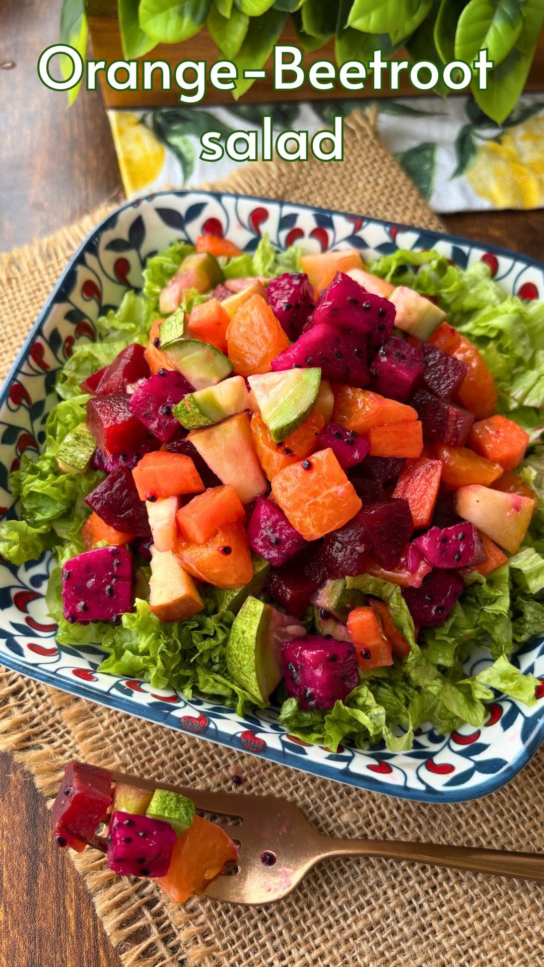 Orange beetroot salad for your gut cleansing & to detox your system Detailed recipe for Orange 🍊 Beetroot salad :- 1. Orange 🍊 chopped 2. Cucumber 🥒 chopped 3. Carrot 🥕 chopped 4. Apple 🍎 chopped 5. Steamed beetroot chopped 6. Dragon fruit chopped (optional) For dressing 7. Orange juice 8. Black salt 9. Black pepper 10. Honey 11. Olive oil 12. Lemon juice Lettuce 🥬 leaves can be added as let choice #trending #healthyfood #festival #recipes #reelsindia #healthy #festivites #guthealthmatters #guthealth #indianfestivals❤️ #festival #diwali #karwachauth