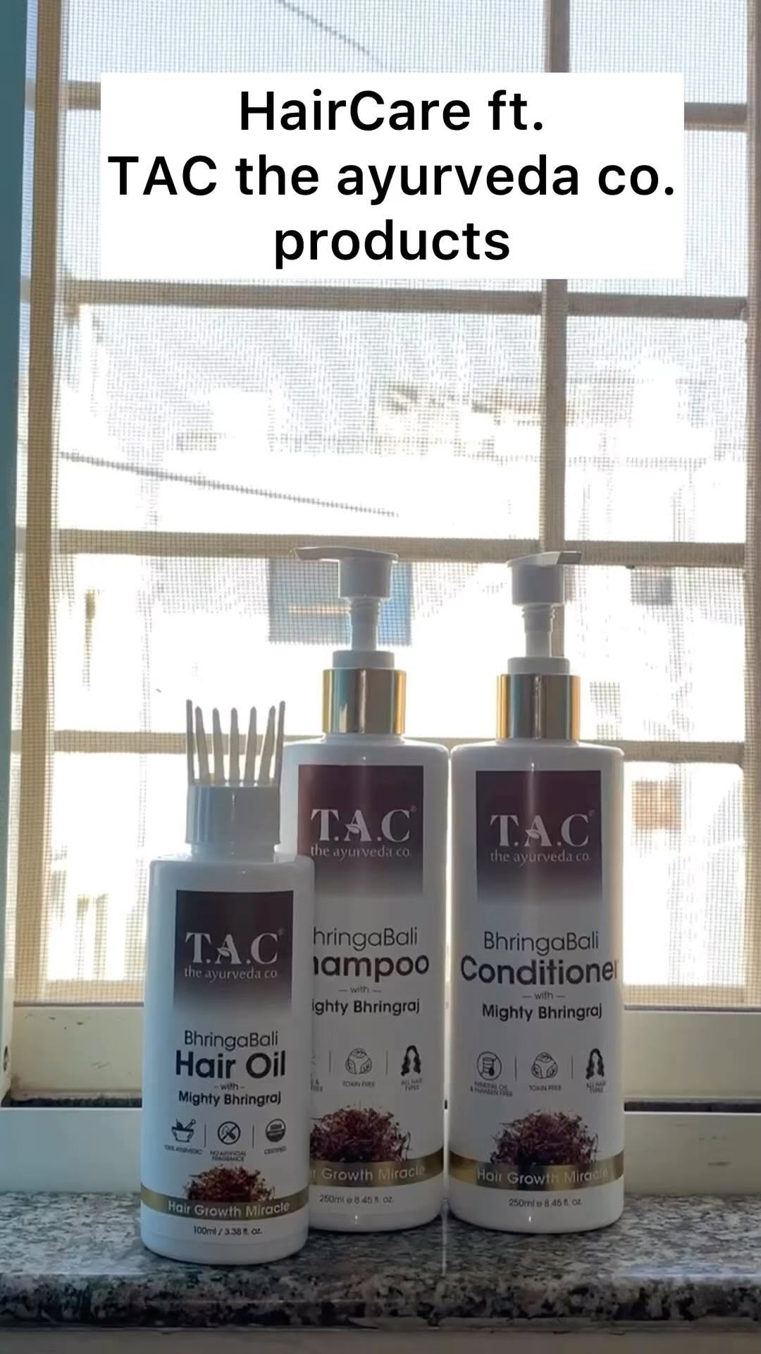 Review time !!! Brand name : @theayurvedaco Product name: TAC @theayurvedaco - BhringaBali Oil+Shampoo+Conditioner Key ingredients: Bhringraj Ext, Amla Ext, Ashwagandha Ext, Green Tea Ext, Shikakai Ext, Neem Ext,Aloe Ext, Almond Ext, Shea Butter,Guar Gum. Benefits: * Promotes Hair Growth and Regeneration. * Smoothens texture. * Controls breakage and hairfall. * Adds shine & moisture. * Nourishes damaged and brittle hair. * Strong,Healthy & Long hair. How to use👇🏻: Step 1: BhringaBali Oil Apply the oil directly on scalp and hair, Gently massage and leave overnight for deep nourishment. Step 2: BhringaBali Shampoo Take adequate amount and gently massage onto wet hair & scalp,Work into lather and then rinse thoroughly. Step 3: BhringaBali Conditioner Apply liberally on damp hair focusing on the length and tips, Leave it for 2-3mins, rinse thoroughly. #review #reelsinstagram #trendingreels #trend #honest #reviewreel #ayurvedaco #ayurvedic #haircare #winterhaircare #hairshampoo #conditioner #hairstyle #hairoiling #curlyhair