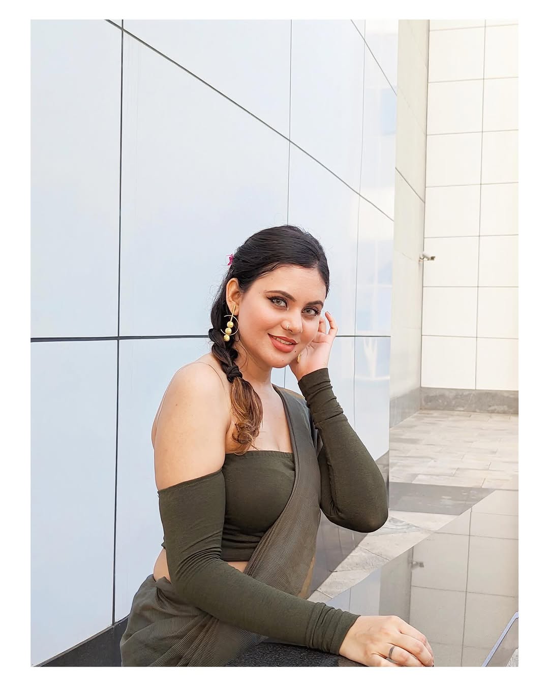 ❤️🔥☘️𝐈𝐧 𝐦𝐲 𝐛𝐚𝐝𝐚𝐬𝐬 𝐝𝐞𝐬𝐢 𝐠𝐢𝐫𝐥 𝐞𝐫𝐚 !! ☘️❤️🔥 𝐒𝐭𝐲𝐥𝐢𝐧𝐠 - @sheril_laurance ✨ 𝐄𝐚𝐫𝐫𝐢𝐧𝐠𝐬 - 𝐄𝐞𝐧𝐲𝐫𝐚 𝐅𝐨𝐥𝐥𝐨𝐰 𝐟𝐨𝐫 𝐦𝐨𝐫𝐞 !!😍💕 . . . . . . . . #ootd #ootdbangalore #ootdindia #personalstyleblog #drapingtechniques #sareelovers #desiswag #monochromaticoutfit #armygreen #olivegreen #sareelovers #bloggerstyle #influencerstyle #stylingtips