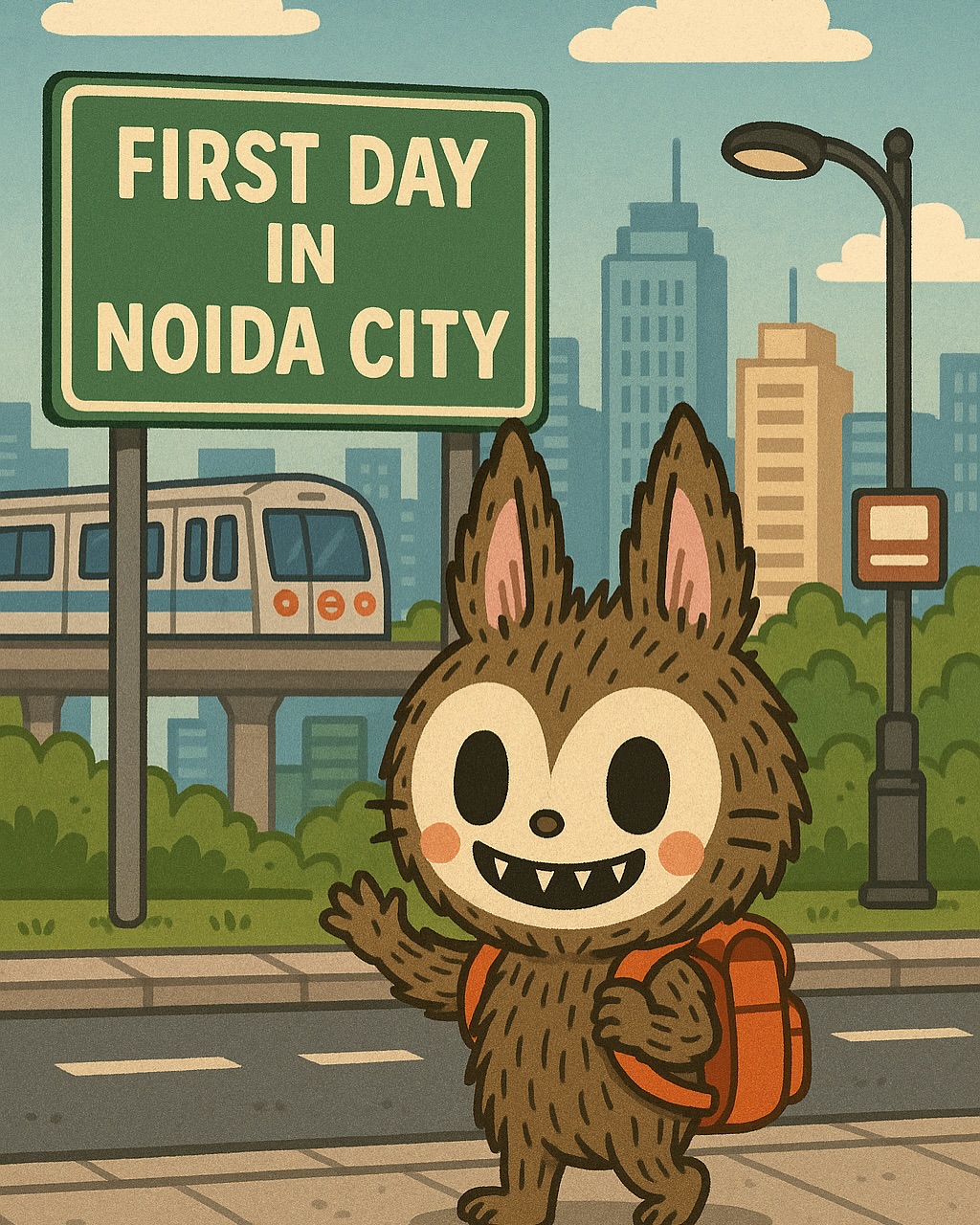 🌆✨ Guess who’s in town? Labubu’s first day in Noida and he’s already loving the vibes! From metro rides to mall strolls, this city’s got him wide-eyed and wild! 🐾🎒 #LabubuInNoida #CityAdventures #FirstDayFeels #noidadiaries