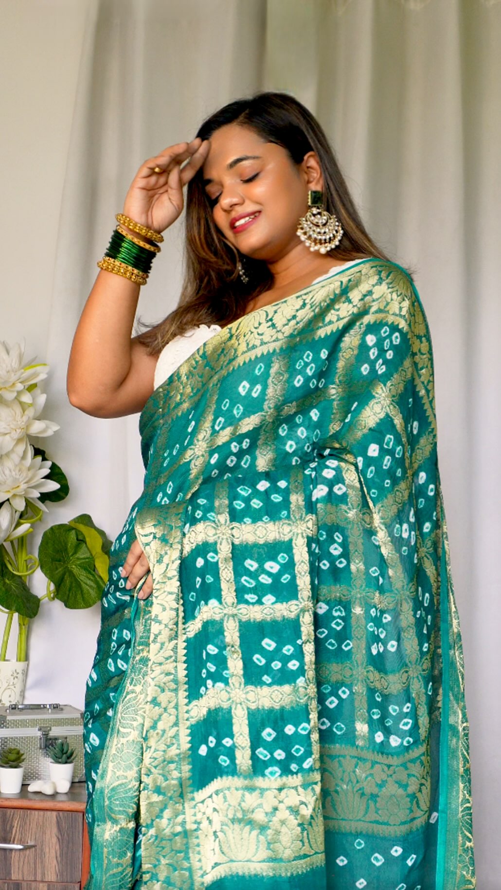 ✨ “Wrapped in tradition, draped in stories… nothing feels more timeless than a Bandhani saree 💚 From vibrant prints to regal weaves, this is my kind of #GRWM — rooted yet radiant. 🌿💫 #SareeNotSari #BandhaniMagic” #BandhaniSaree #EthnicElegance #IndianWeaves #SareeLove #FestiveVibes #DesiLook #EthnicGlow #SareeNotSari #IndianHandloom #TraditionalStyle #stylekaja #shopkaja