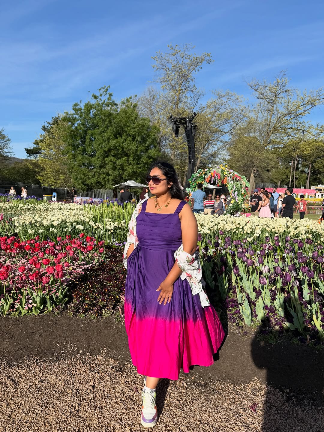 Dressed like the sky met the sunset 💙💗 … walking through a sea of tulips that look just as magical 🌷✨ . . . Wearing @taara.clothing Neckpiece @trinkets_unleashurinnersparkle #TulipFestivalVibes #tulipfestival #floriadecanberra #canberra #vacation #familytime #needabreak #tulipseason #tulips #ootd #tulip🌷#floriadeaustralia