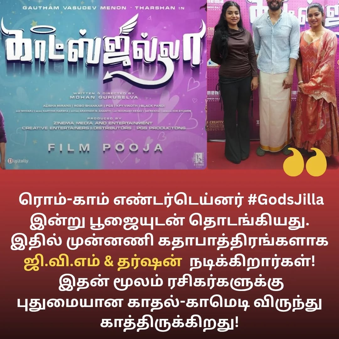 Rom-Com #GodsJilla begins with Pooja today✨ Starring GVM & Tharshan