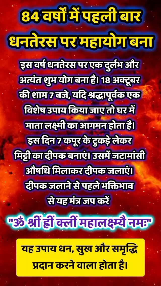 84 वर्षों में पहली बार धनतेरस पर महायोग बना #reelsinstagram #trending #reelsviral #reelsfacebook #viral #postinstagram #post #dhanteras2025 #dhanteras #dhanterasday #dhanteraswishes #dhanteraskabhai