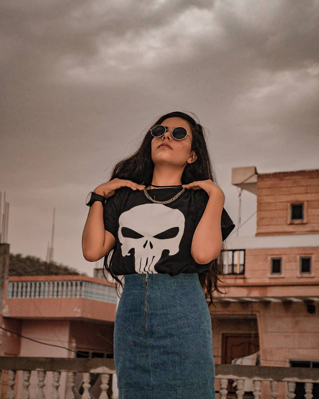 "Let Me Be What I'm Meant To Be." Punisher🎱 Punk and roadster fashion is not my style but to explore this fashion style I just put the basic street wear pieces of my closet into bit punk fashion style. To cover up the outfit I wore heavy chains and choker to emphasize the whole look into roaster vibe. Finally come up with this outfit🖤 @lightroom Lightroom Present- churros #thepunisher #roadster #punkfashion #streetwear #fashionist #fashionblogger #churros #lightroompresets #lightroomedits #streetfashion #streetlook #punisher #blacklove #punkstyle #fashiononfleek