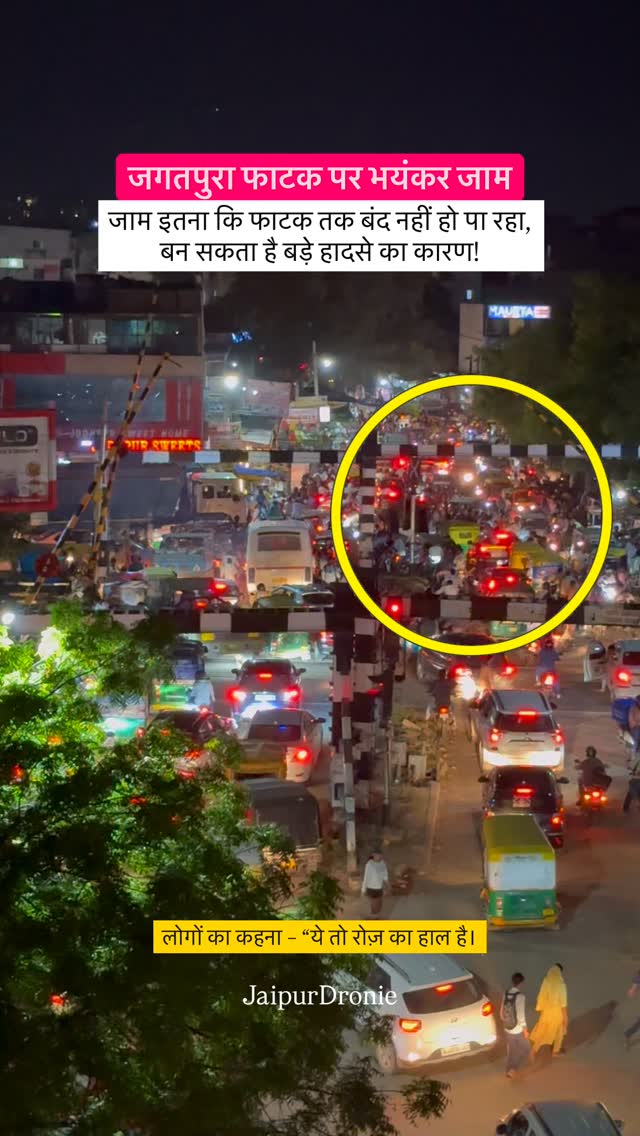 जगतपुरा फाटक पर भीषण जाम 🚦 जाम इतना कि फाटक तक बंद नहीं हो पाया, बन सकता है बड़ा हादसा। लोगों का कहना – “ये तो रोज़ का हाल है।