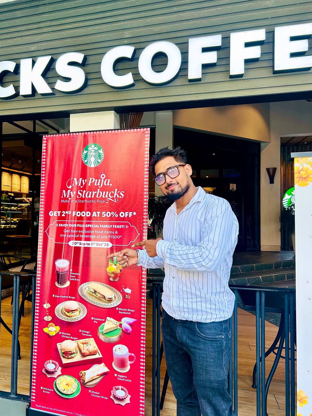 This Diwali Kuch Meetha Ho Jayein in @starbucks_guwahati .A Must Visit Destination To Indulge In Delightful Coffee And Scrumptious Treats. The Calmness And Presence Of The Place Through The Decorations And Comfort Seating Arrangement is So Pleasing😍 Celebrate The Festival Of Lights With Starbucks Premium Hamper Specially Curated To Bring Joy And Elegance To Your Festivities . Wheather You’re Gifting it To Family ,Friends Or Business Associates This Hamper Embodies The Spirit Of Giving With Its Luxurious Presentation Pnd Premium Sweets Perfect For Making a Lasting Impressions 🙌🥰 And Also Make it a Starbucks Puja… ✨Enjoy Puja Special Family Feast✨ 🎉GET 2nd FOOD AT 50% OFF🎉 🤩Get Four Exclusive Food Items & One Special Beverage At Just 1500/- 💃🕺 . . #starbucks #starbucksoffer #starbuckspuja #mypujamystarbucks #the_foodmaniac_dhan #google #instagram #facebook #starbucksindia