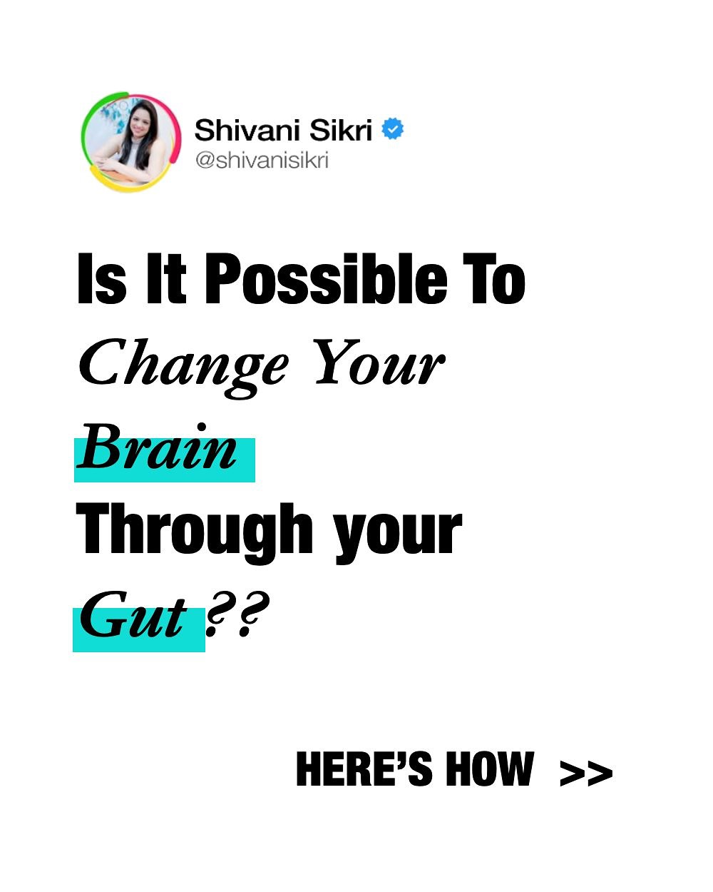 Gut Feeling ; Gut & Brain Axis #gut #guthealthmatters mindfulness #mindfulness #mindset #wellness #health #brain .. . . .. Shivani Sikri | The Wellness Catalyst Nutritionist | Nutri4Verve | Nutri4Verve App @nutri4verve Health Coach | Health | Wellness | Education | Courses | Online Coach | Mindfulness | life coach Influencer | Digital Creator | Content Creator Podcast | Podcaster | Dietician . . . . . . . . . . Disclaimer: We encourage you to use these products /services/suggestions as suggested by your doctor , nutritionist , health care professional and please understand that any usage is solely at your own responsibility.