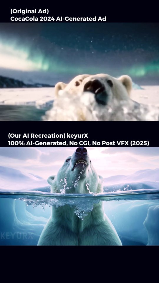 We challenged ourselves to recreate the iconic Coca-Cola 2024 AI-generated ad—100% AI, zero CGI, zero post-VFX. The result? A brand-new vision of what’s possible when cutting-edge tech meets raw creativity. Check out our side-by-side comparison and see how AI is reshaping brand storytelling across the globe. Ready to harness the power of AI for your own campaigns? DM us or drop a comment—let’s create something unforgettable together! #AIAdvertising #NoCGI #NoPostVFX #GlobalBrand #KeyurX #FutureOfMarketing #Innovation #Trending #AI #ViralAd #CocaColaRecreation