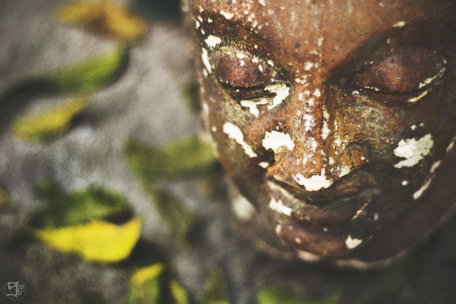 Buddhang Sarang Gachhami #buddha #statue #topshot #leaf #decoration #multicolored #roughsurface #greenleaf #yellowleaf #stonestatue #meditation #peace #peaceofmind #calm #humanity #pray #buddhism #buddhastatue #closeup #colour #colourphotography #streetphotographyindia #street #streetphotography #street_infinity #india #kolkata #merideewar