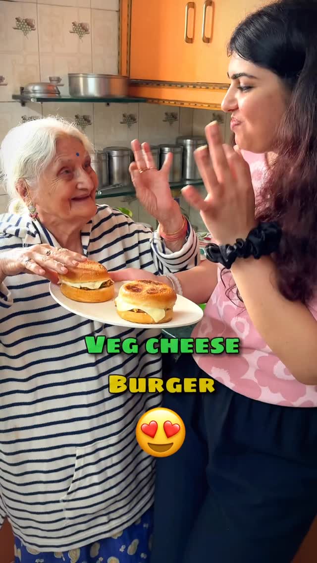 CRISPY VEG CHEESE BURGER 🍔 w दादी 👵🏻😋|| Easy & Tasty Recipe || Namaste 🙏🏽❤️ . . 🌱 Veg Cheese Burger Recipe 🍔 Ingredients: • Oil – 1 tbsp • Onion – 1 medium, chopped • Green chilli – 1, finely chopped • Tomato – 1 medium, chopped • Capsicum – ½, chopped • Carrot – 1 small, chopped • Paneer – ½ cup, cut into cubes • Cheese (processed or diced) – ¼ cup • Cheese slices – 2 • Mayonnaise – 2 tbsp • Burger buns – 2 • Butter – 1 tbsp • Salt – to taste • Oregano – ½ tsp • Chilli flakes – ½ tsp • Garam masala – ½ tsp • Red chilli powder – ¼ tsp • Chaat masala – ½ tsp • Sauce (tomato/chilli/schezwan as per taste) – 2 tbsp ⸻ Method: 1. Prepare the stuffing: • Heat oil in a pan. • Add chopped onions, sauté till slightly golden. • Add green chilli, tomato, capsicum, and carrot. Cook for 2–3 minutes. • Season with salt, oregano, chilli flakes, garam masala, red chilli powder, and chaat masala. • Mix well and cook till veggies are soft. • Add paneer cubes, diced cheese, and sauce. Cook for 1–2 minutes till cheese melts slightly. 2. Assemble the burger: • Slice burger buns in half. • On one half, spread the prepared paneer-cheese mixture and place a cheese slice on top. • On the other half, spread mayonnaise. 3. Toast the buns: • Heat some butter on a tawa/pan. • Place both sides of the bun and toast till golden and slightly crispy. . . . . #shorts #instagram #fyp #explore